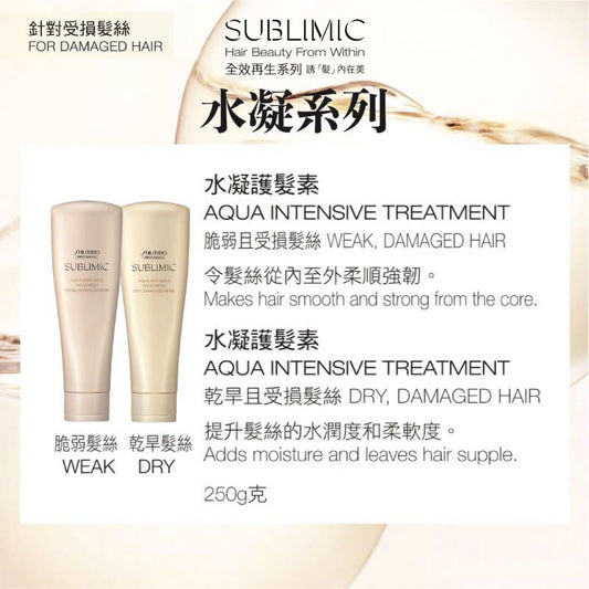 SHISEIDO SMC AQUA INTENSIVE TREATMENT (WEAK, DAMAGED HAIR) 250ml 水凝護髮素 (脆弱且受損髮絲)